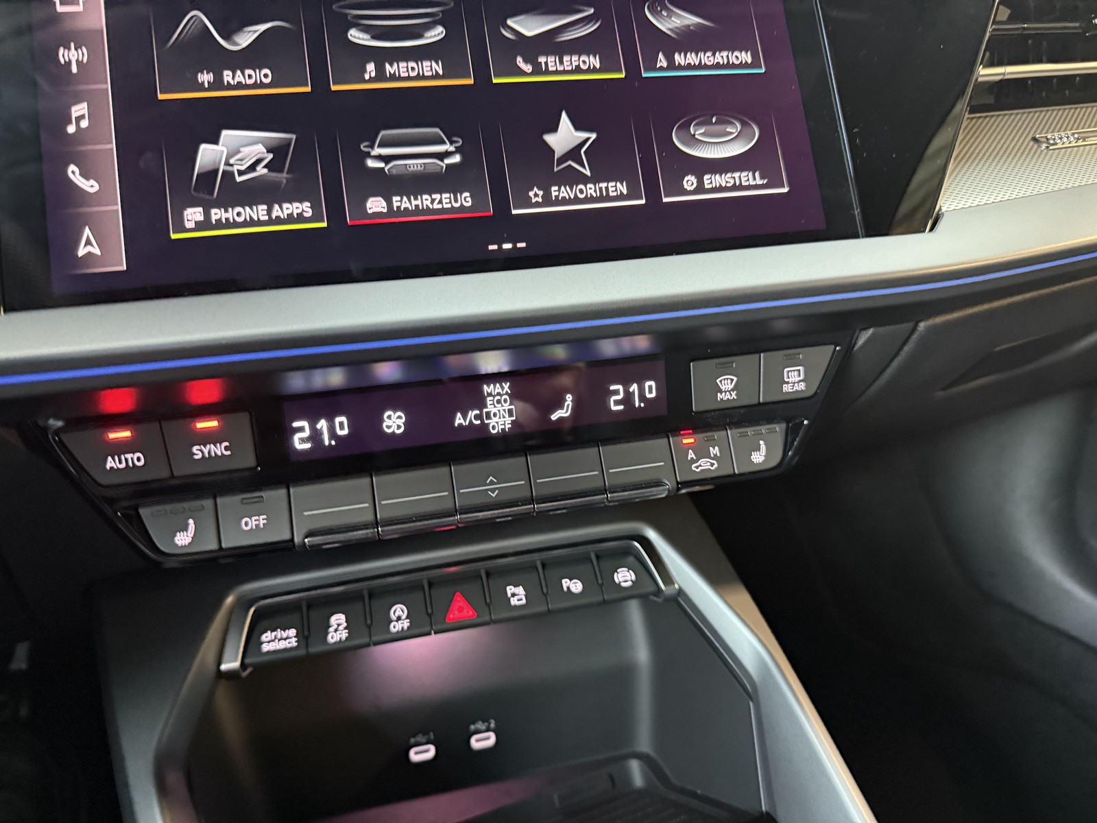 - USB-Ladeanschlüsse (2-fach, Typ C) für Fondpassagiere